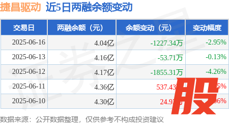本站消息长宏网,6月16日,捷昌驱动(603583)融资买入1250.9万元,融资偿还2424.91万元,融资净卖出1174.01万元,融资余额4.03亿元。